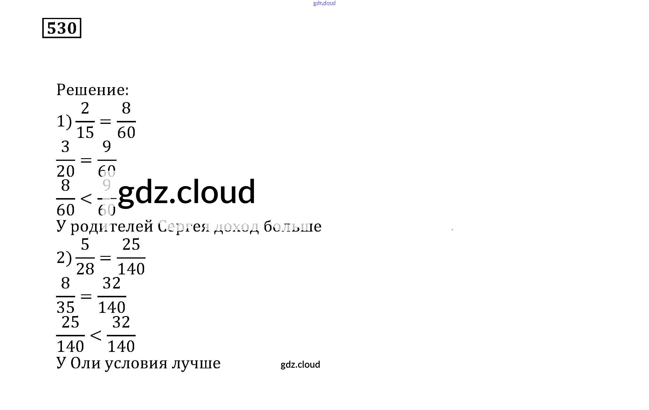 Ответ на задание 530 Учебник Математика за 5 (пятый) класс Муравин, Муравина 2016 ФГОС онлайн и без номера телефона.