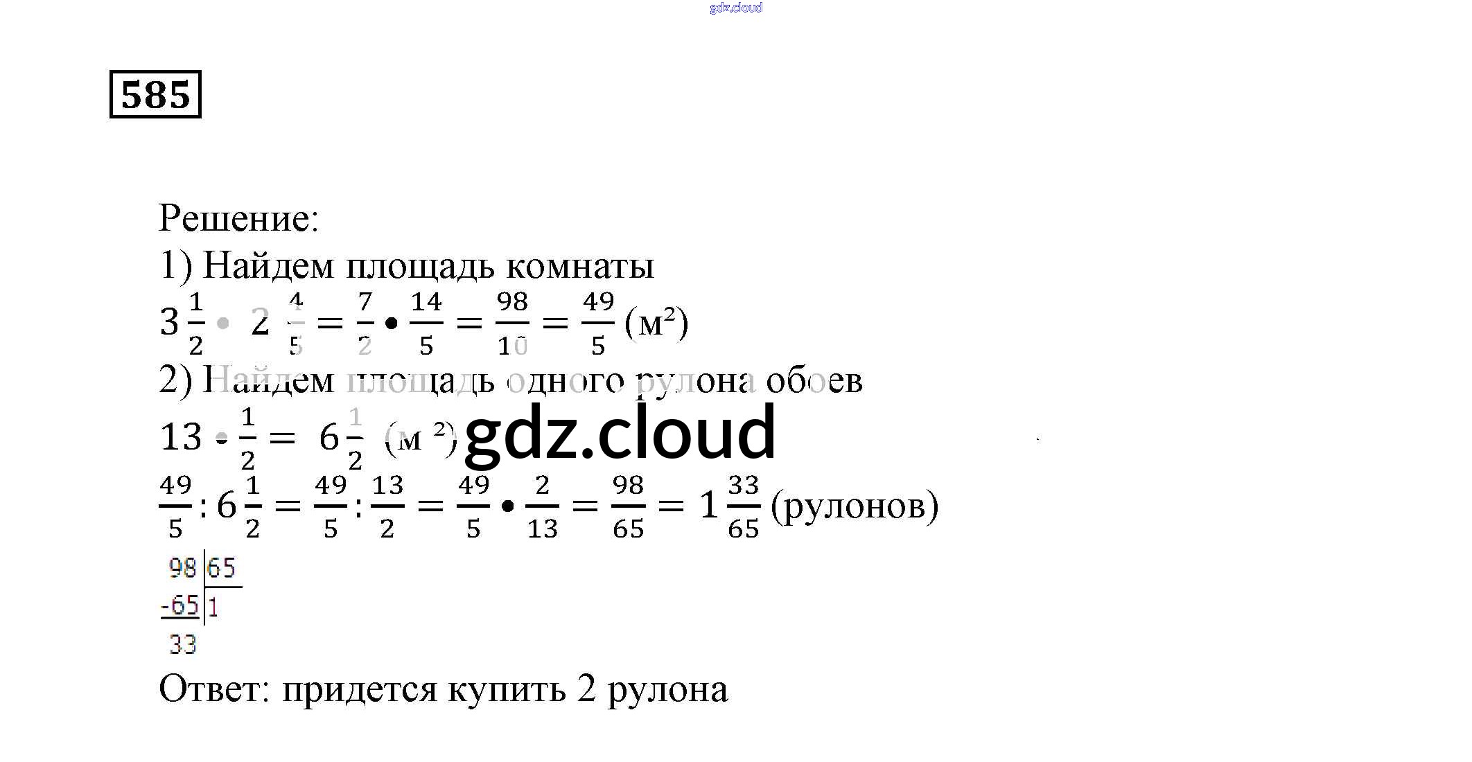 Ответ на задание 585 Учебник Математика за 5 (пятый) класс Муравин, Муравина 2016 ФГОС онлайн и без номера телефона.