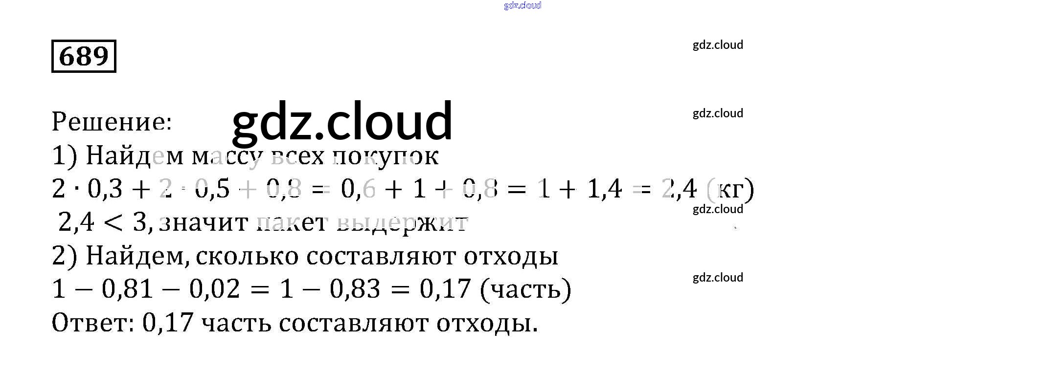 Ответ на задание 689 Учебник Математика за 5 (пятый) класс Муравин, Муравина 2016 ФГОС онлайн и без номера телефона.