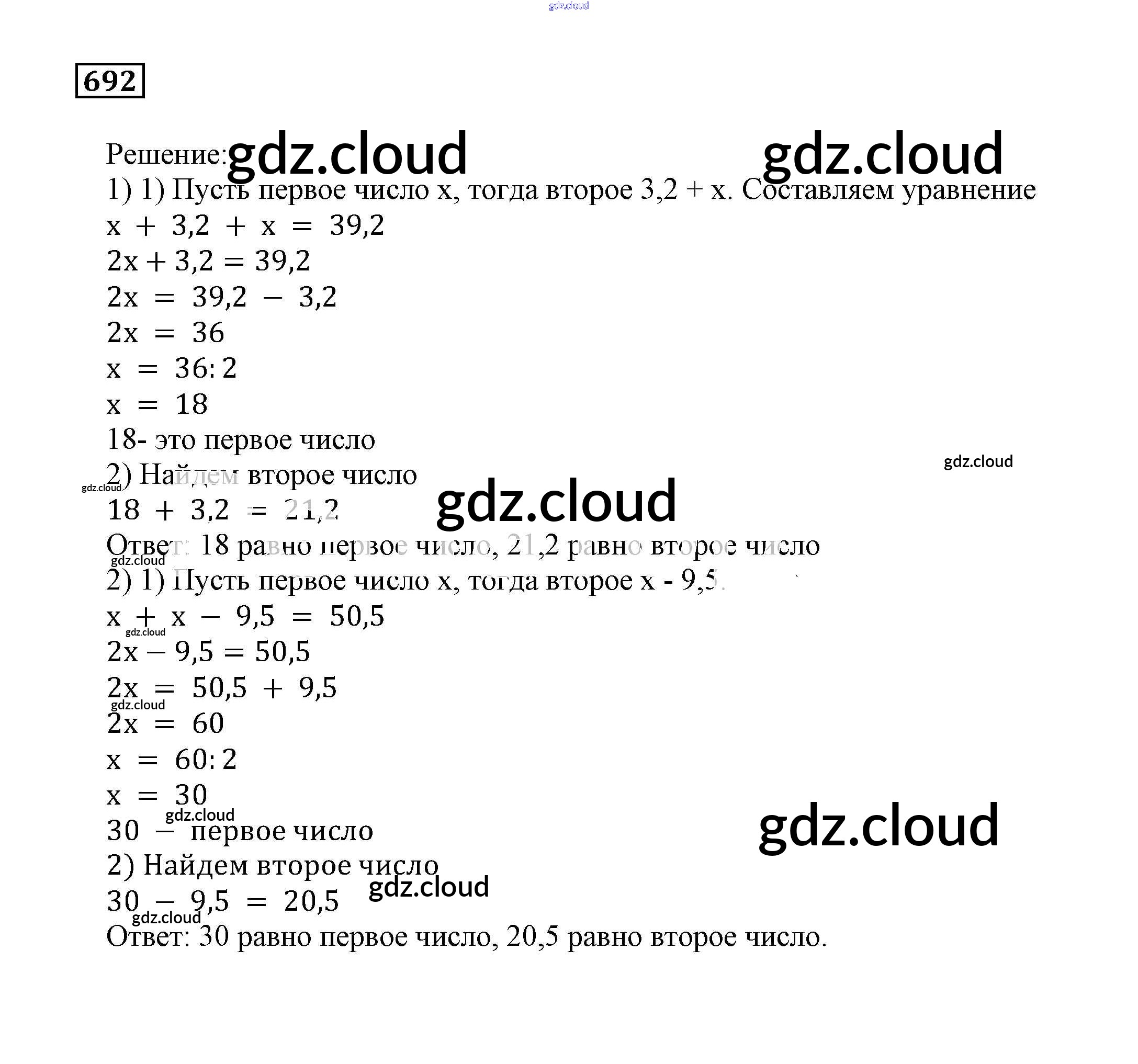 Ответ на задание 692 Учебник Математика за 5 (пятый) класс Муравин, Муравина 2016 ФГОС онлайн и без номера телефона.