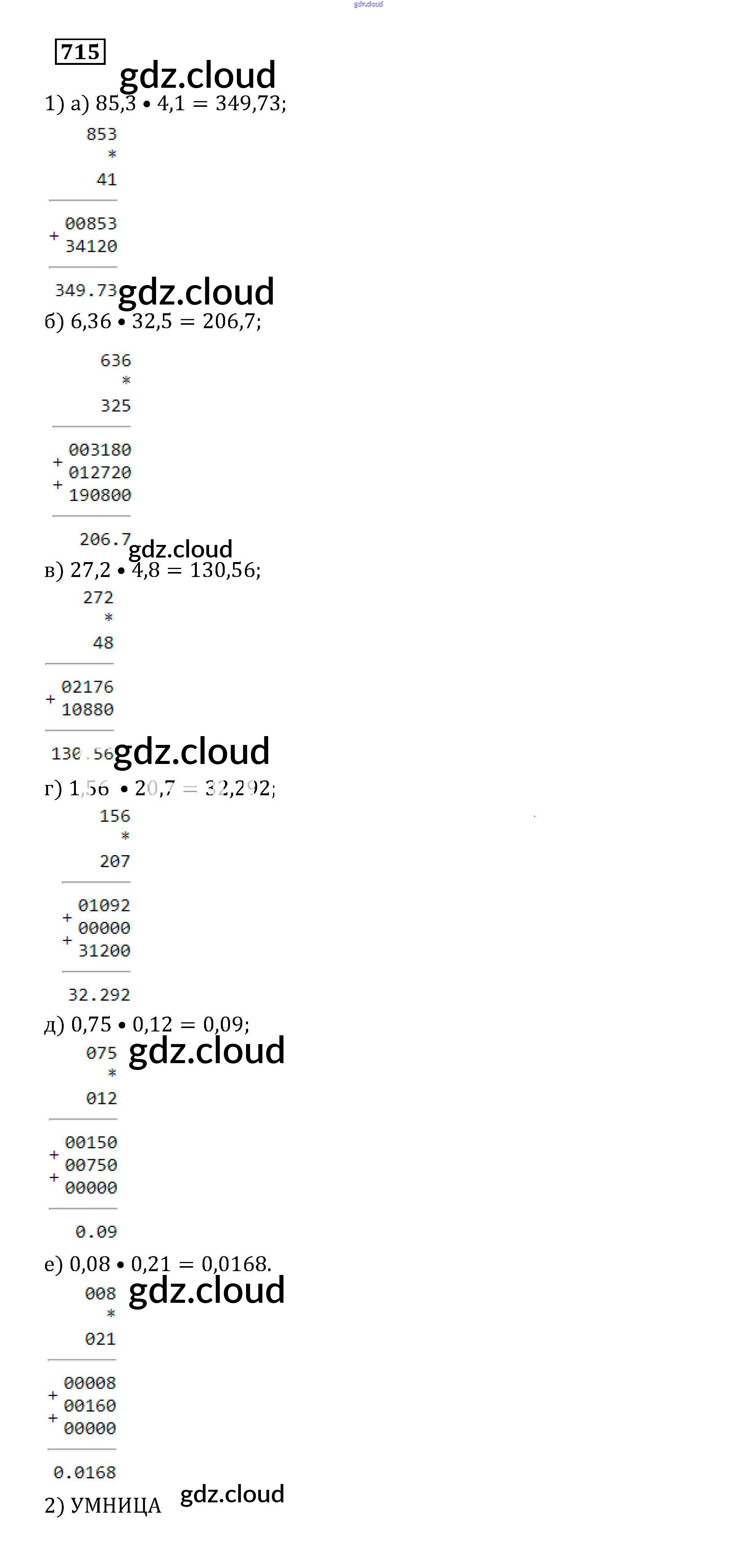 Ответ на задание 715 Учебник Математика за 5 (пятый) класс Муравин, Муравина 2016 ФГОС онлайн и без номера телефона.