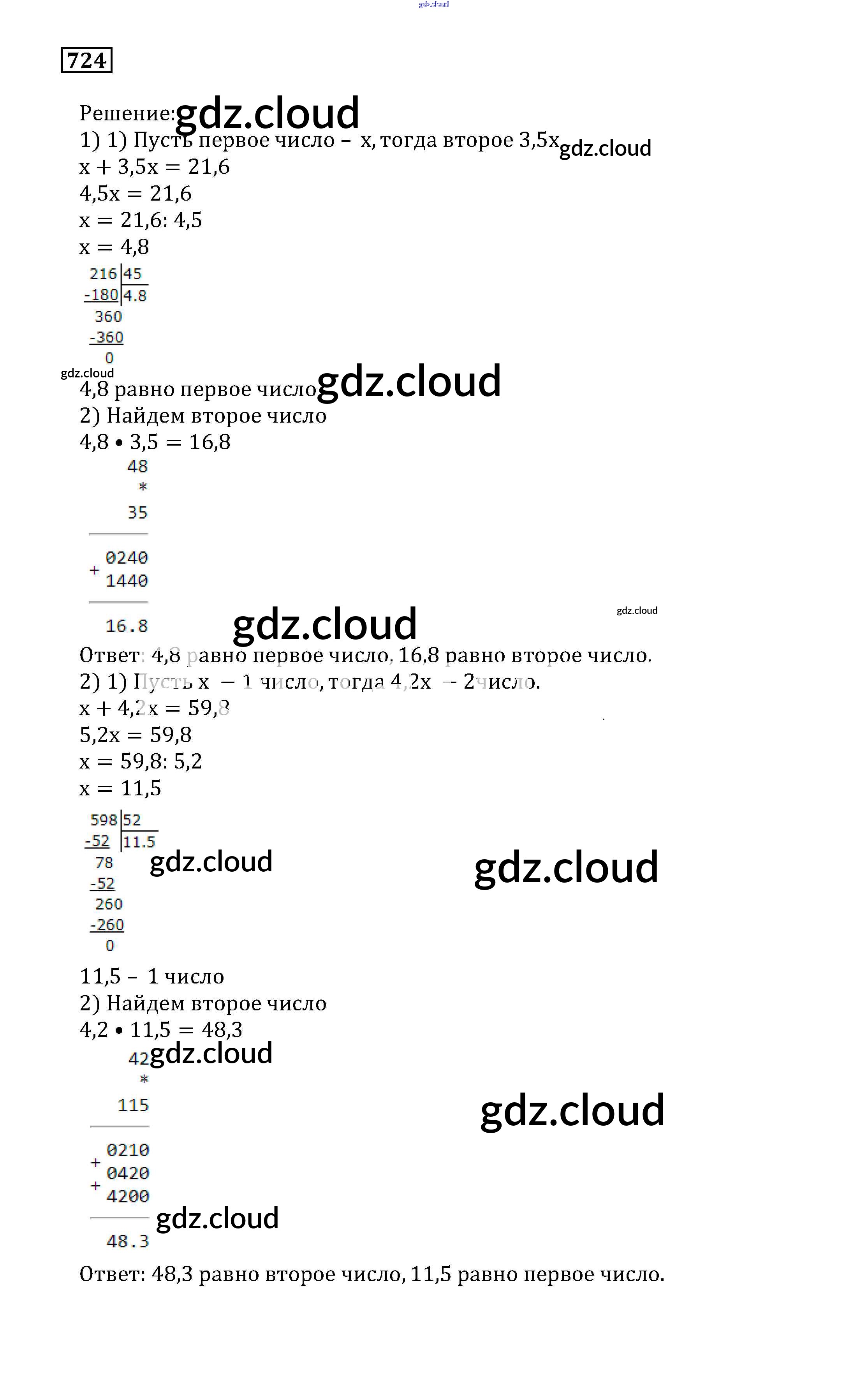 Ответ на задание 724 Учебник Математика за 5 (пятый) класс Муравин, Муравина 2016 ФГОС онлайн и без номера телефона.
