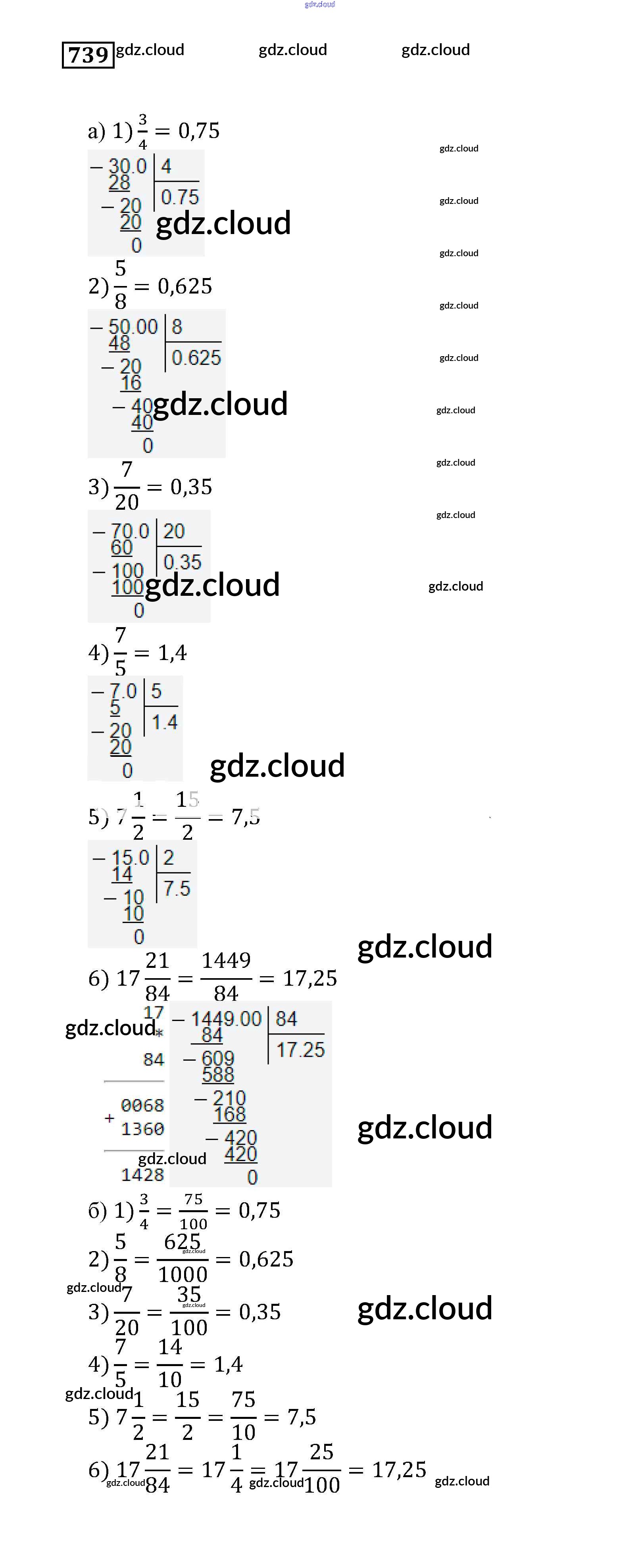 Ответ на задание 739 Учебник Математика за 5 (пятый) класс Муравин, Муравина 2016 ФГОС онлайн и без номера телефона.