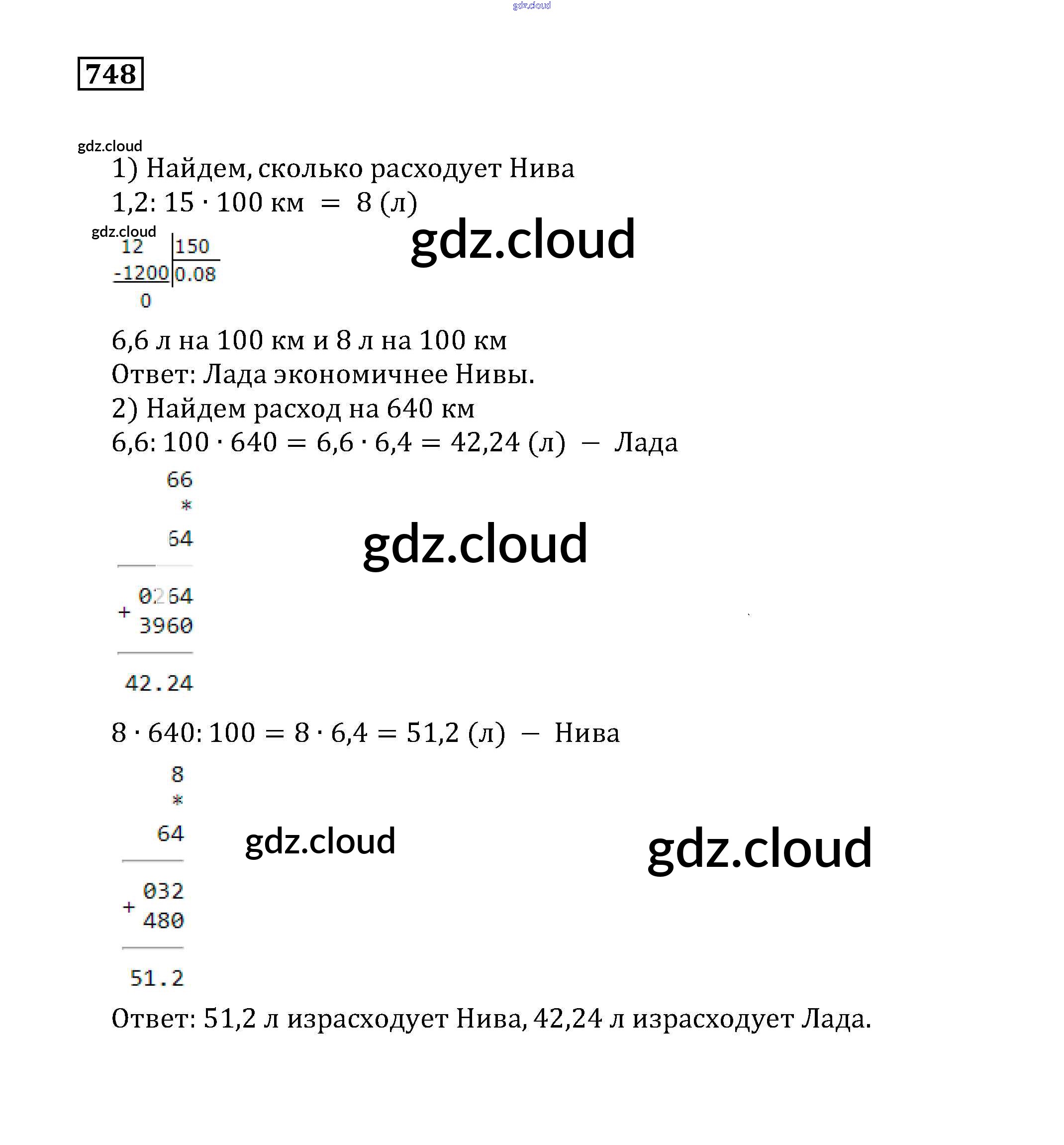 Ответ на задание 748 Учебник Математика за 5 (пятый) класс Муравин, Муравина 2016 ФГОС онлайн и без номера телефона.