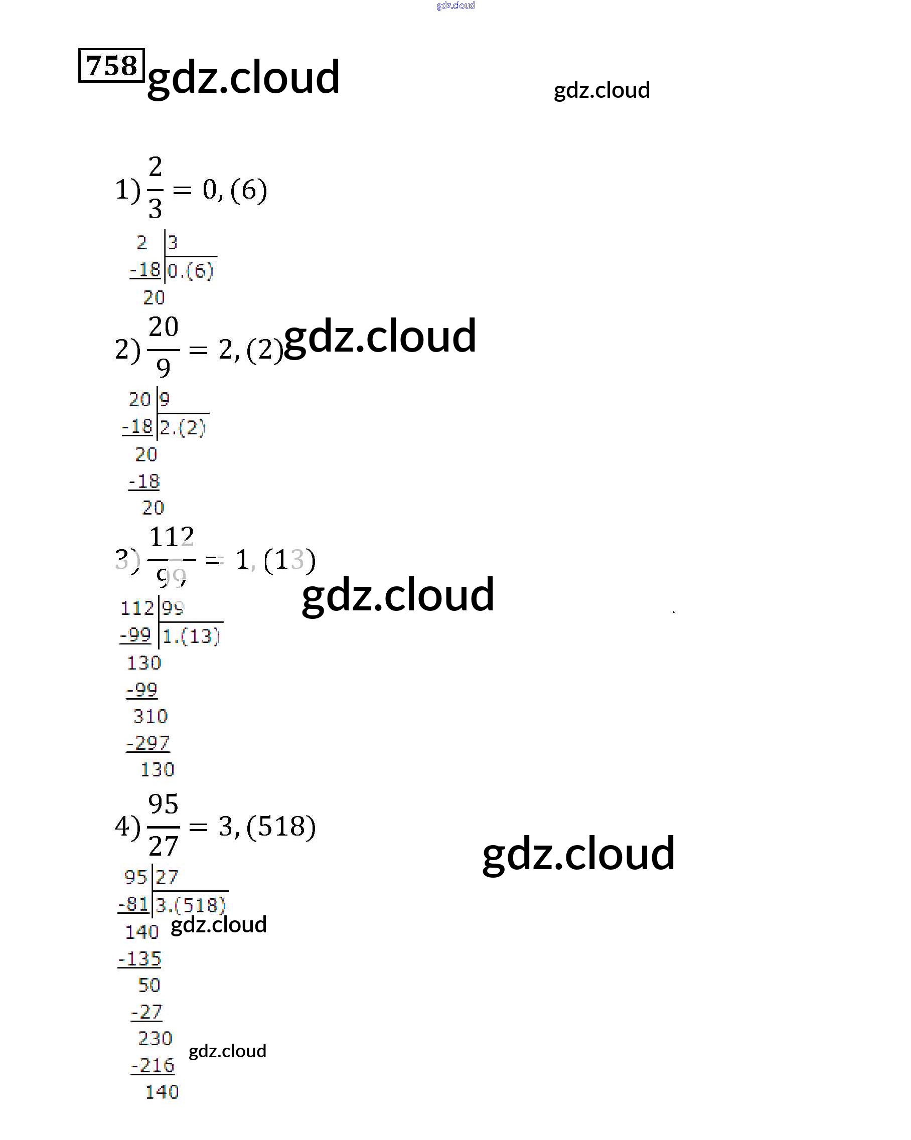 Ответ на задание 758 Учебник Математика за 5 (пятый) класс Муравин, Муравина 2016 ФГОС онлайн и без номера телефона.