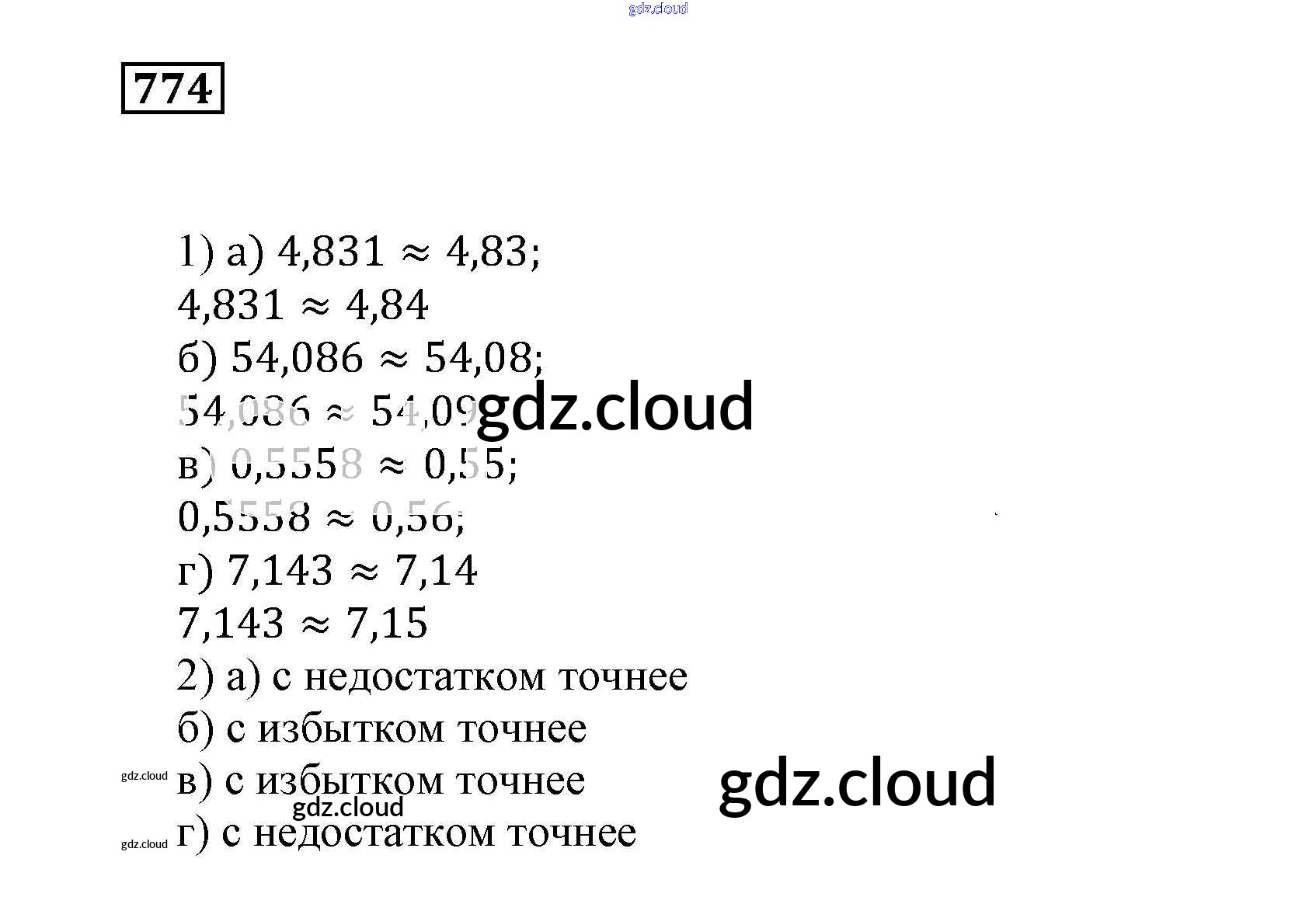 Ответ на задание 774 Учебник Математика за 5 (пятый) класс Муравин, Муравина 2016 ФГОС онлайн и без номера телефона.