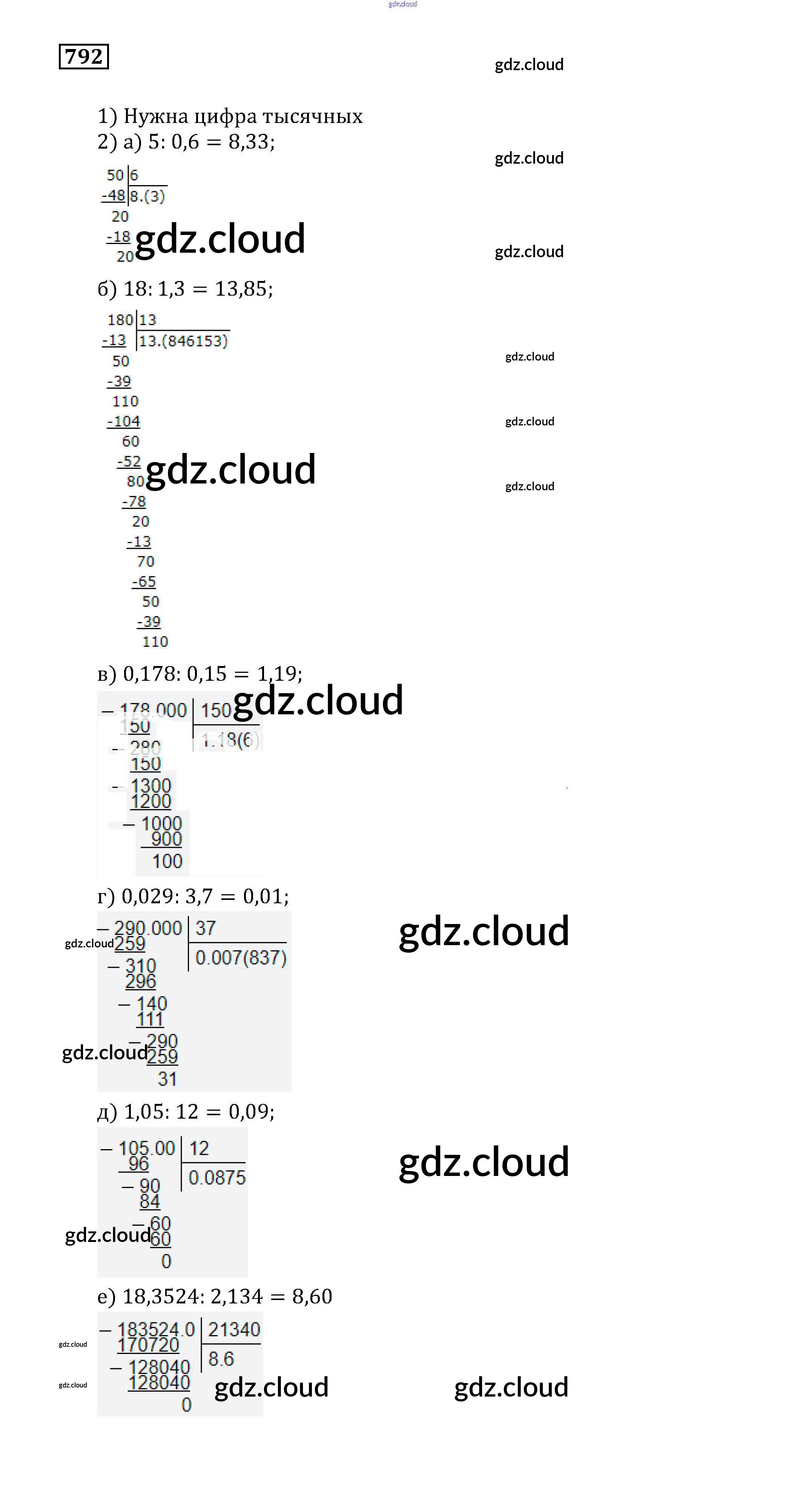 Ответ на задание 792 Учебник Математика за 5 (пятый) класс Муравин, Муравина 2016 ФГОС онлайн и без номера телефона.