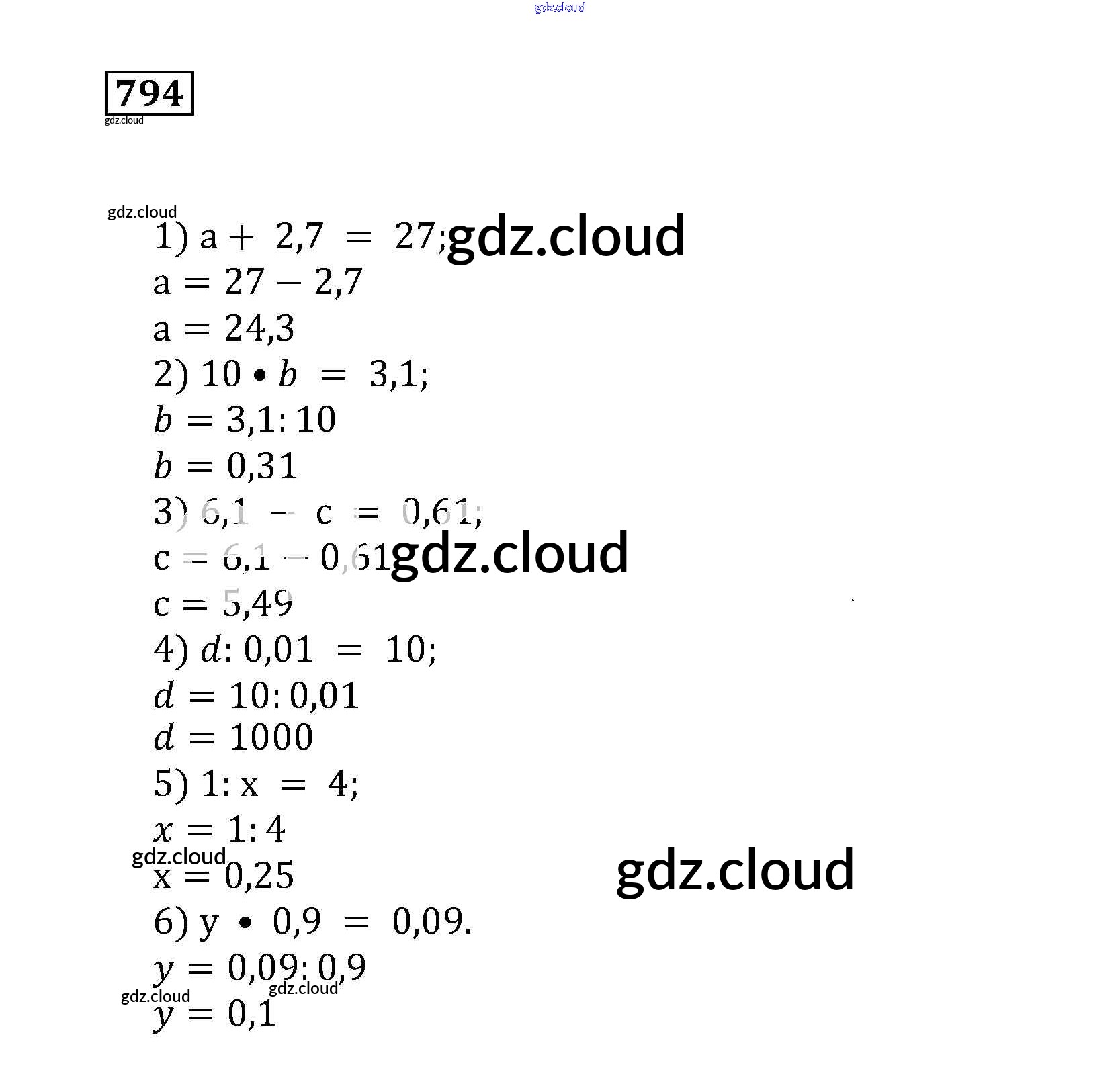 Ответ на задание 794 Учебник Математика за 5 (пятый) класс Муравин, Муравина 2016 ФГОС онлайн и без номера телефона.