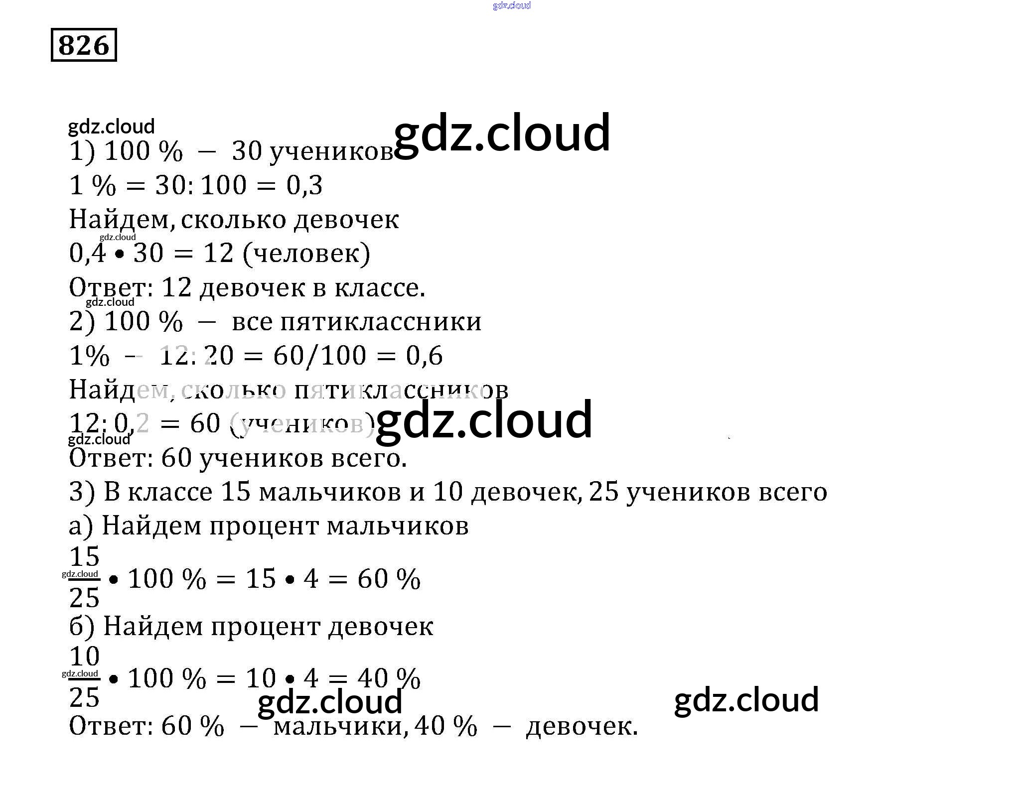 Ответ на задание 826 Учебник Математика за 5 (пятый) класс Муравин, Муравина 2016 ФГОС онлайн и без номера телефона.