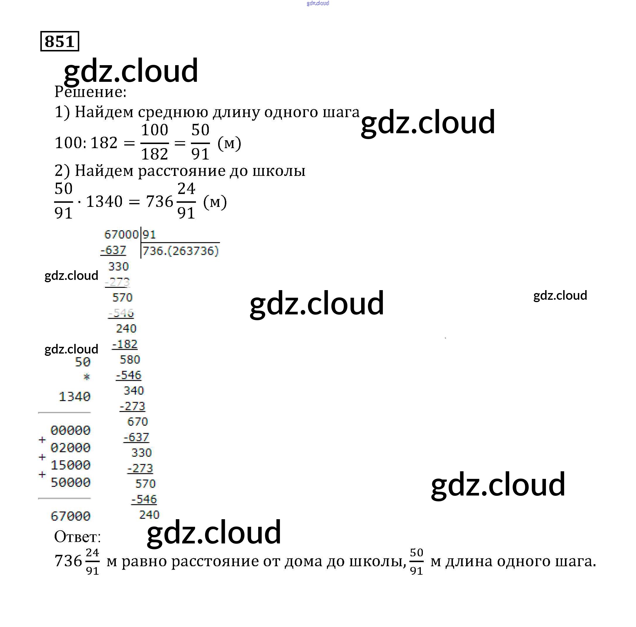 Ответ на задание 851 Учебник Математика за 5 (пятый) класс Муравин, Муравина 2016 ФГОС онлайн и без номера телефона.