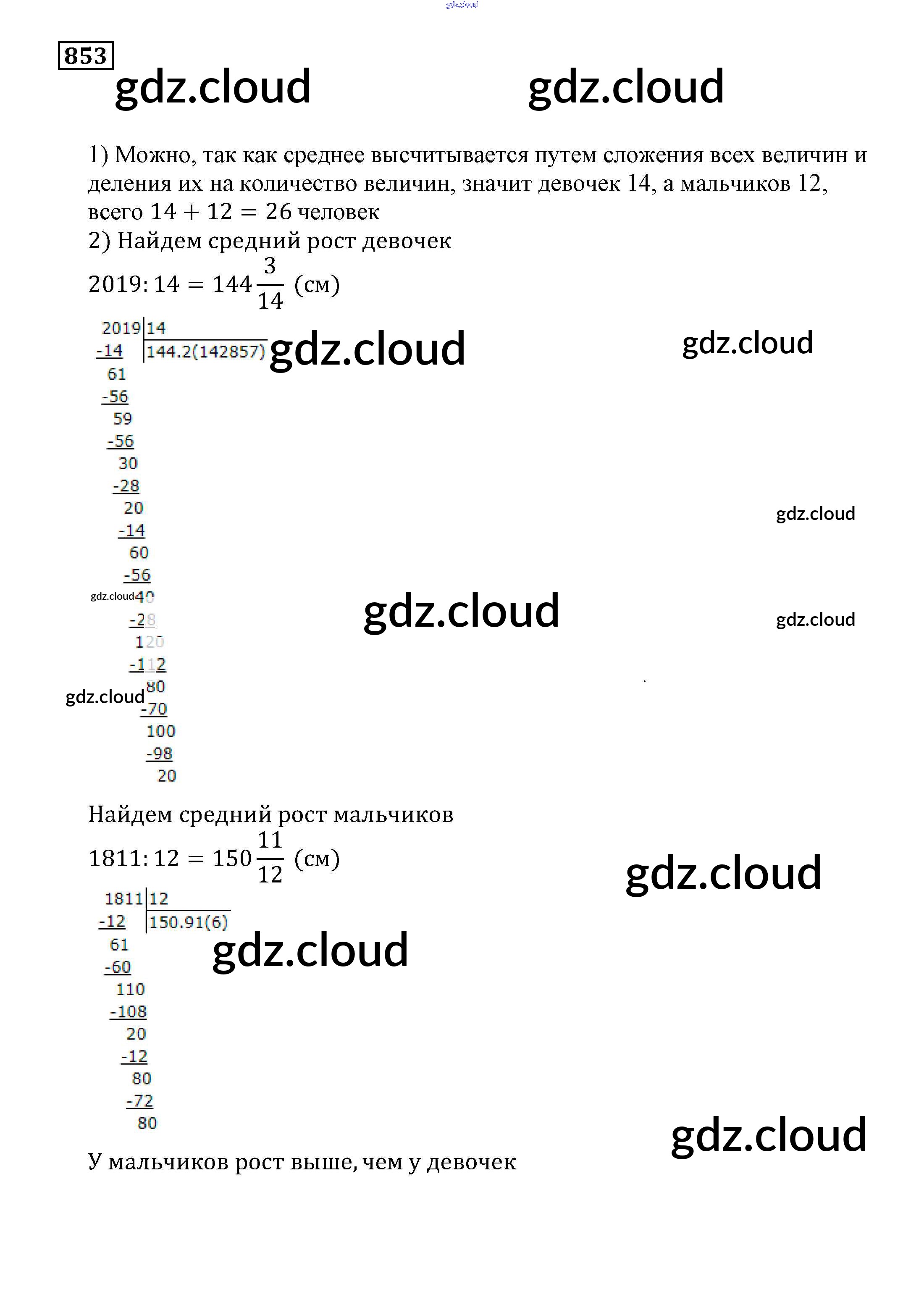 Ответ на задание 853 Учебник Математика за 5 (пятый) класс Муравин, Муравина 2016 ФГОС онлайн и без номера телефона.