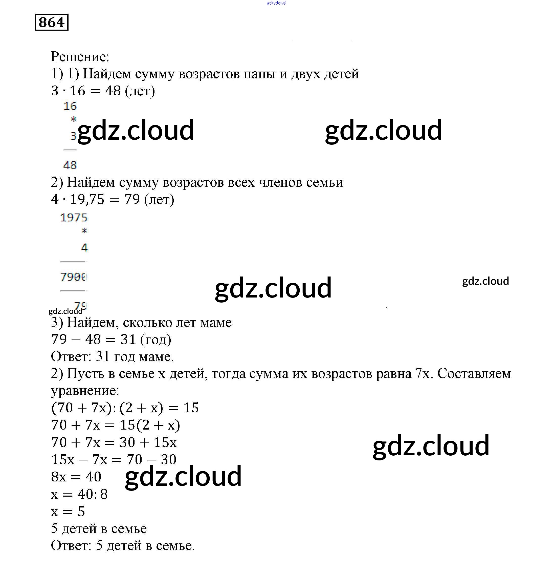 Ответ на задание 864 Учебник Математика за 5 (пятый) класс Муравин, Муравина 2016 ФГОС онлайн и без номера телефона.