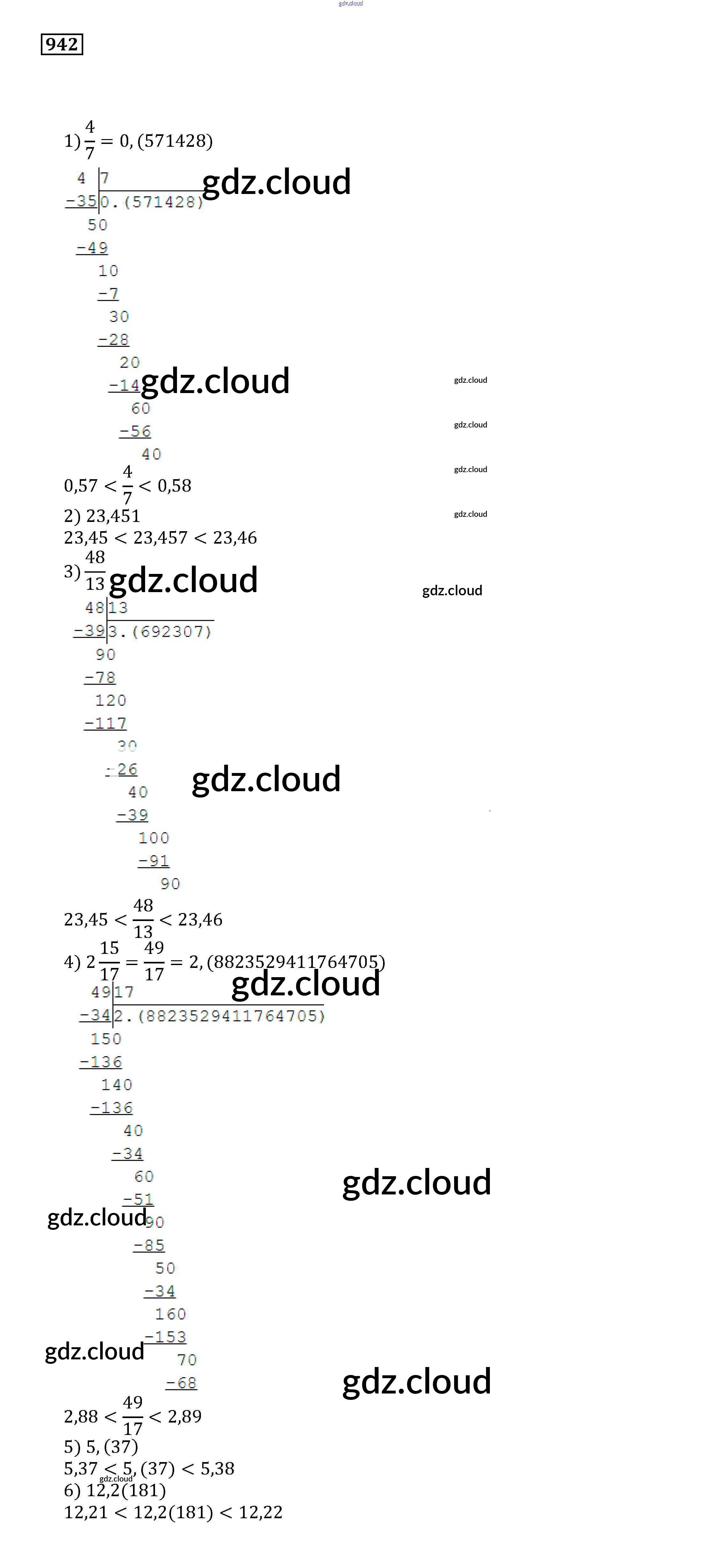 Ответ на задание 942 Учебник Математика за 5 (пятый) класс Муравин, Муравина 2016 ФГОС онлайн и без номера телефона.