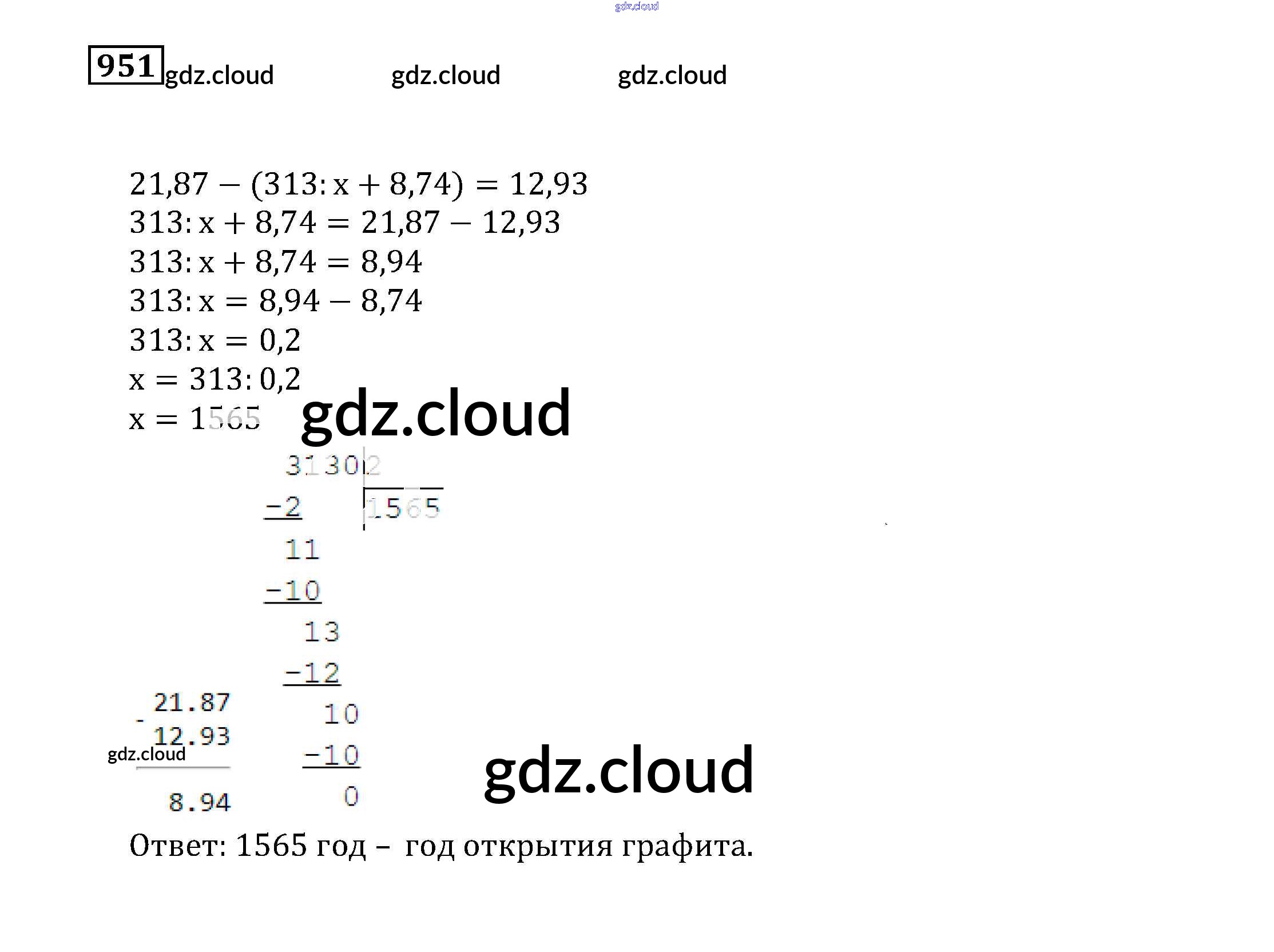 Ответ на задание 951 Учебник Математика за 5 (пятый) класс Муравин, Муравина 2016 ФГОС онлайн и без номера телефона.