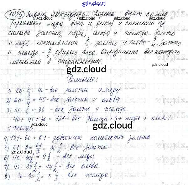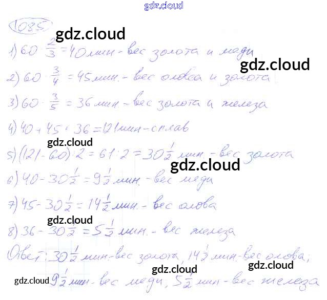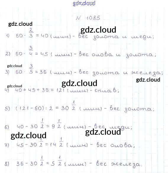 Ответ на задание 1085 Учебник Математика за 5 (пятый) класс Никольский, Потапов, Решетников, Шевкин МГУ - школе 2016, 2012