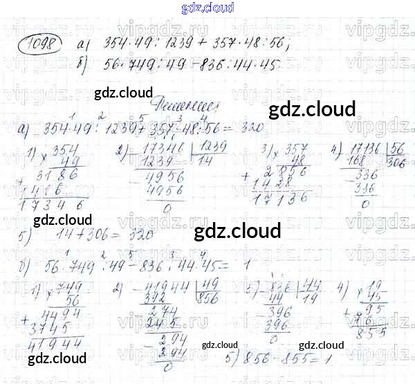 Ответ на задание 1098 Учебник Математика за 5 (пятый) класс Никольский, Потапов, Решетников, Шевкин МГУ - школе 2016, 2012