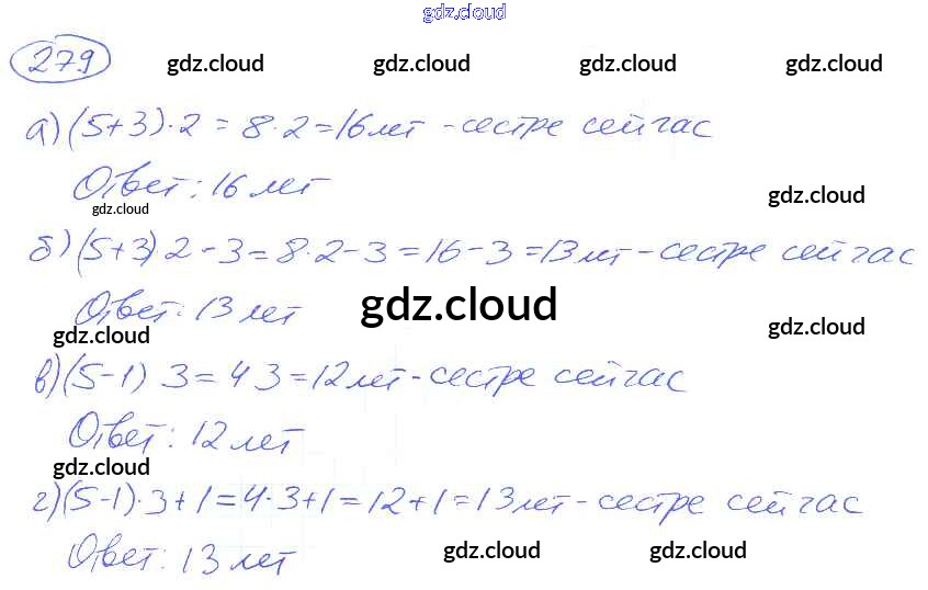 Ответ на задание 279 Учебник Математика за 5 (пятый) класс Никольский, Потапов, Решетников, Шевкин МГУ - школе 2016, 2012