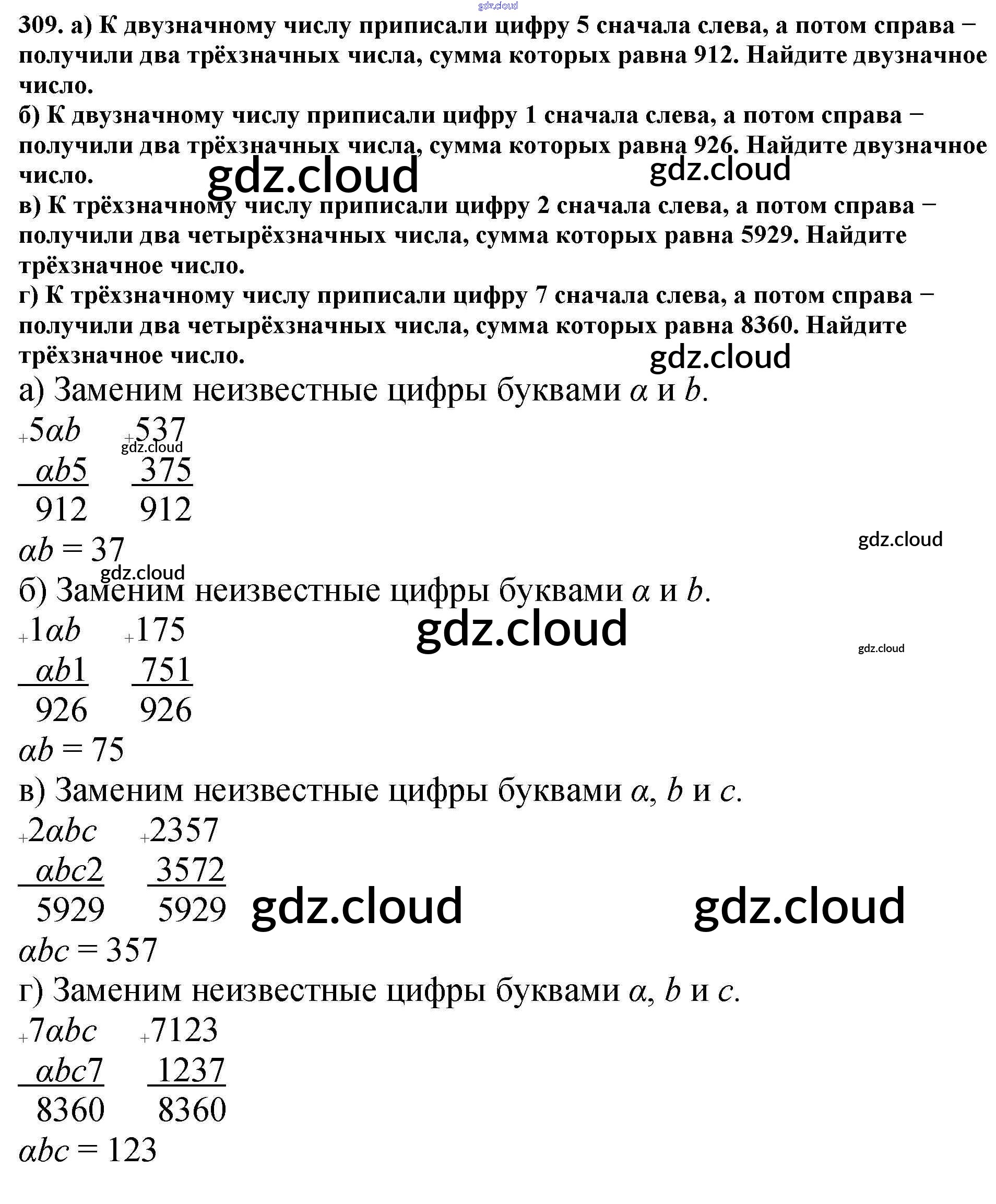 Ответ на задание 309 Учебник Математика за 5 (пятый) класс Никольский, Потапов, Решетников, Шевкин МГУ - школе 2016, 2012