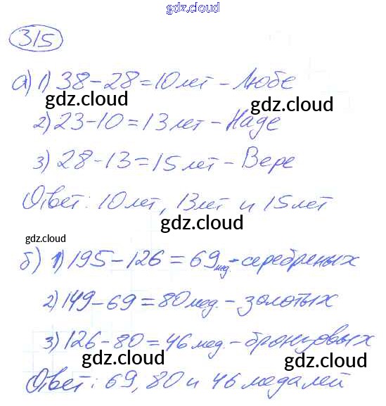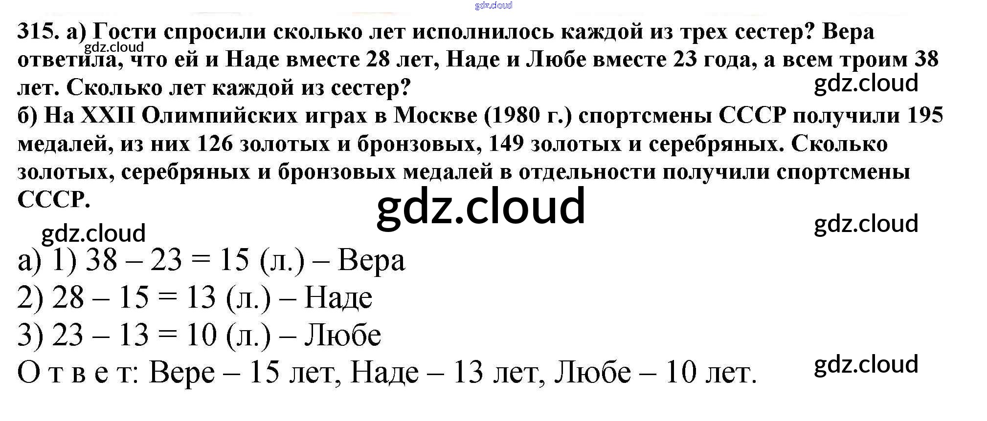Ответ на задание 315 Учебник Математика за 5 (пятый) класс Никольский, Потапов, Решетников, Шевкин МГУ - школе 2016, 2012