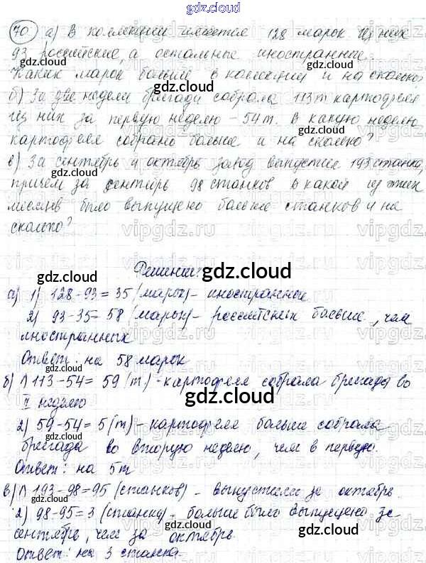 Ответ на задание 70 Учебник Математика за 5 (пятый) класс Никольский, Потапов, Решетников, Шевкин МГУ - школе 2016, 2012