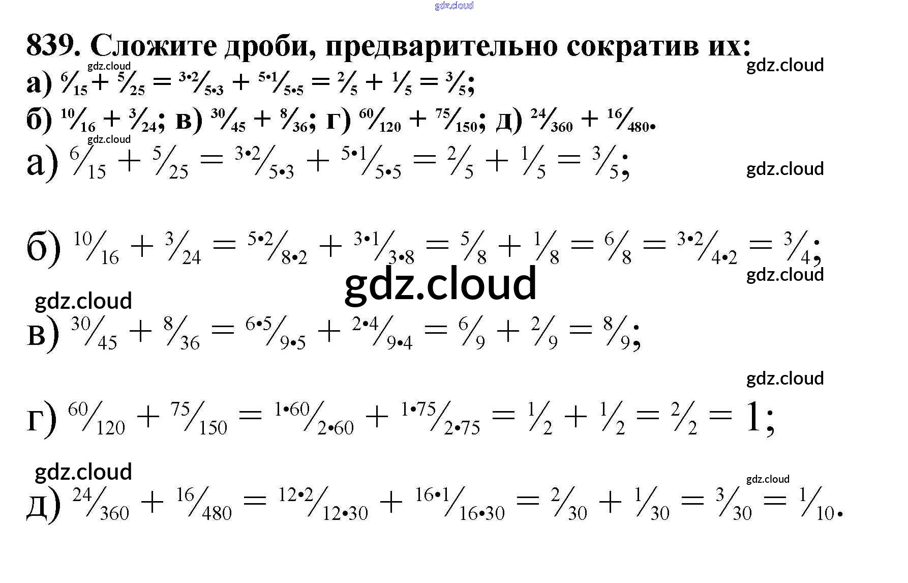 Ответ на задание 839 Учебник Математика за 5 (пятый) класс Никольский, Потапов, Решетников, Шевкин МГУ - школе 2016, 2012