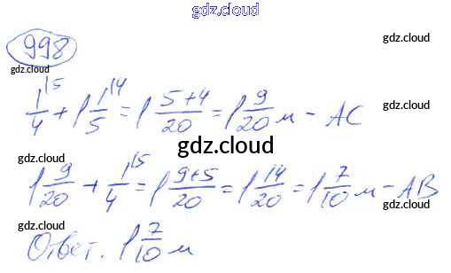 Ответ на задание 998 Учебник Математика за 5 (пятый) класс Никольский, Потапов, Решетников, Шевкин МГУ - школе 2016, 2012