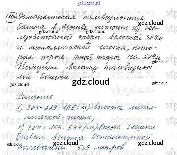 Ответ на задание 104 Учебник Математика за 5 (пятый) класс Виленкин, Жохов, Чесноков, Шварцбурд 2013