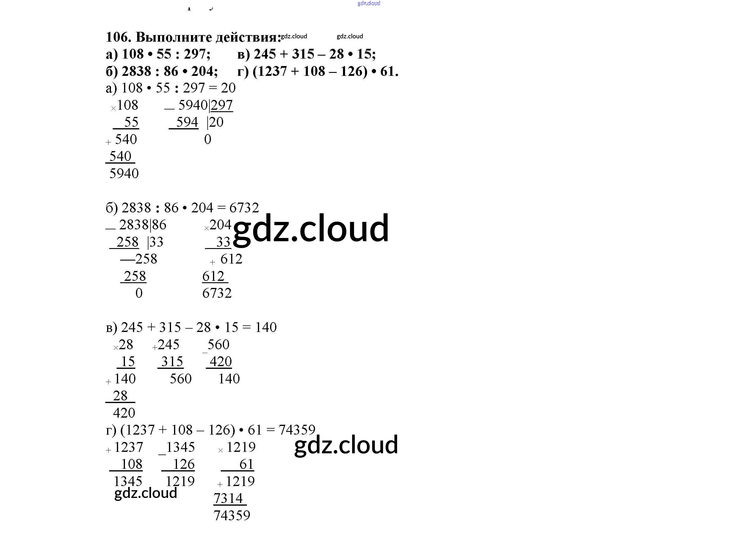 Ответ на задание 106 Учебник Математика за 5 (пятый) класс Виленкин, Жохов, Чесноков, Шварцбурд 2013