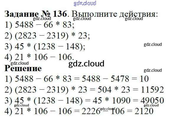 Ответ на задание 136 Учебник Математика за 5 (пятый) класс Виленкин, Жохов, Чесноков, Шварцбурд 2013