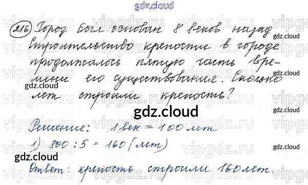 Ответ на задание 216 Учебник Математика за 5 (пятый) класс Виленкин, Жохов, Чесноков, Шварцбурд 2013