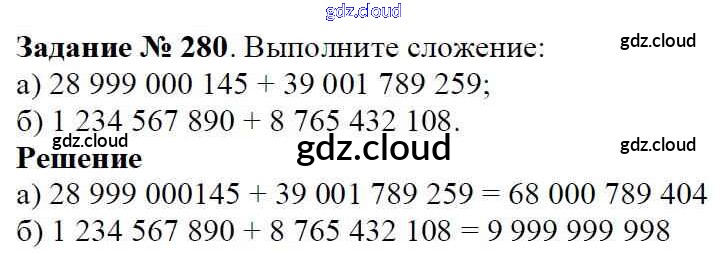 Ответ на задание 280 Учебник Математика за 5 (пятый) класс Виленкин, Жохов, Чесноков, Шварцбурд 2013