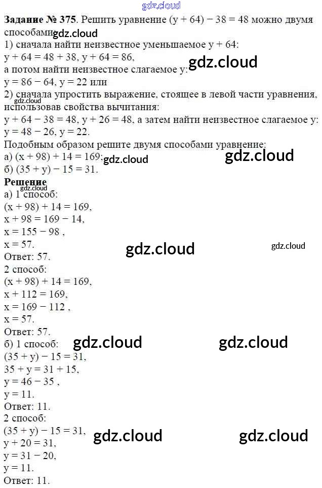 Ответ на задание 375 Учебник Математика за 5 (пятый) класс Виленкин, Жохов, Чесноков, Шварцбурд 2013