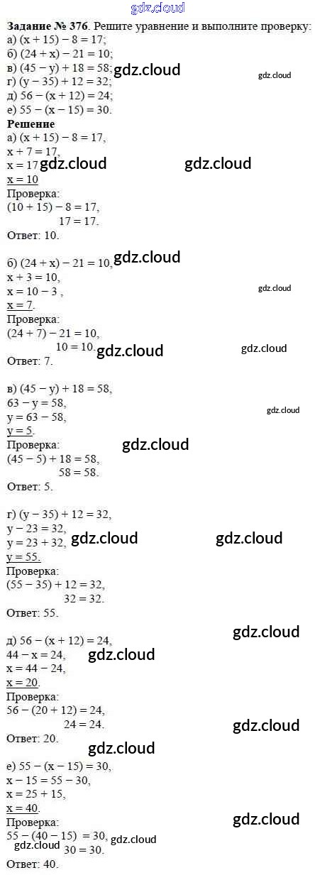 Ответ на задание 376 Учебник Математика за 5 (пятый) класс Виленкин, Жохов, Чесноков, Шварцбурд 2013