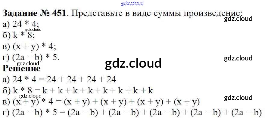 Ответ на задание 451 Учебник Математика за 5 (пятый) класс Виленкин, Жохов, Чесноков, Шварцбурд 2013