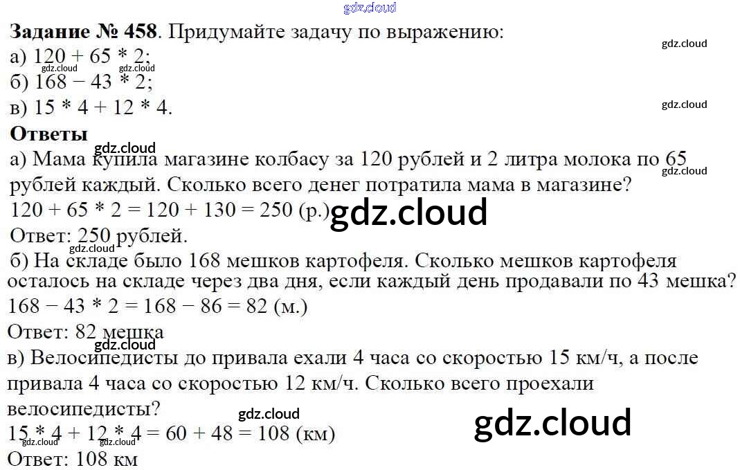 Ответ на задание 458 Учебник Математика за 5 (пятый) класс Виленкин, Жохов, Чесноков, Шварцбурд 2013