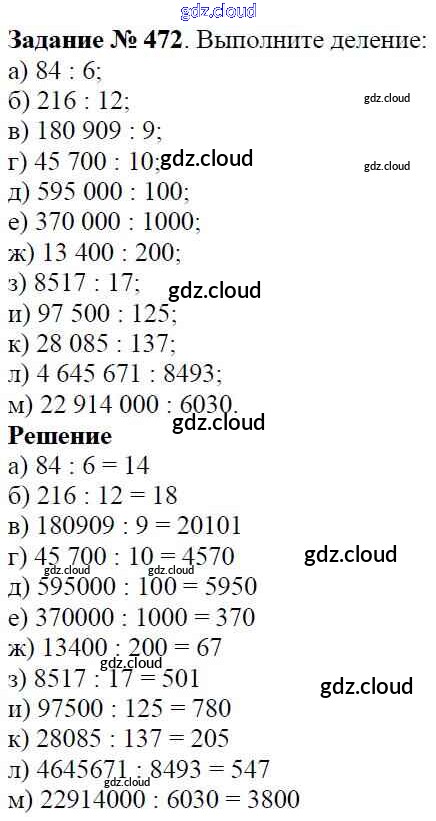 Ответ на задание 472 Учебник Математика за 5 (пятый) класс Виленкин, Жохов, Чесноков, Шварцбурд 2013