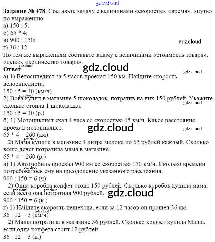 Ответ на задание 478 Учебник Математика за 5 (пятый) класс Виленкин, Жохов, Чесноков, Шварцбурд 2013