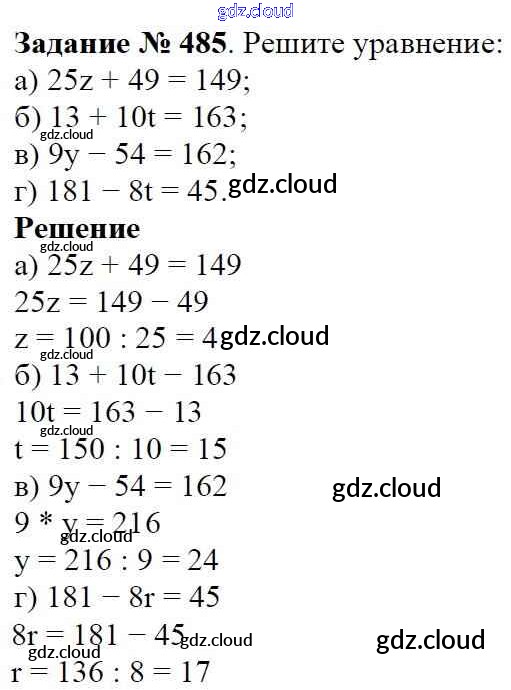 Ответ на задание 485 Учебник Математика за 5 (пятый) класс Виленкин, Жохов, Чесноков, Шварцбурд 2013