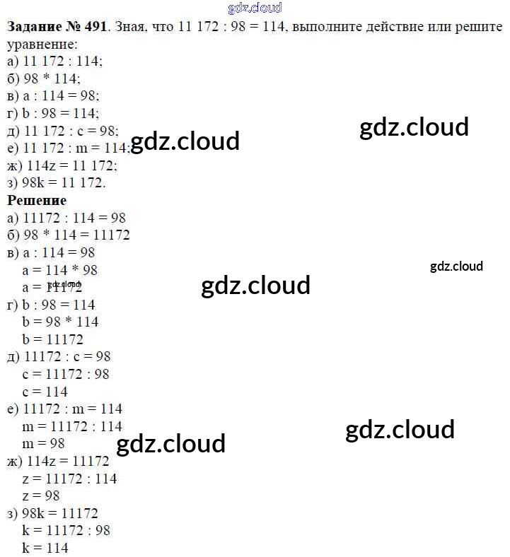 Ответ на задание 491 Учебник Математика за 5 (пятый) класс Виленкин, Жохов, Чесноков, Шварцбурд 2013