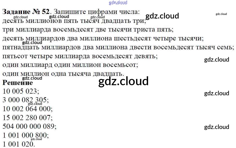 Ответ на задание 52 Учебник Математика за 5 (пятый) класс Виленкин, Жохов, Чесноков, Шварцбурд 2013
