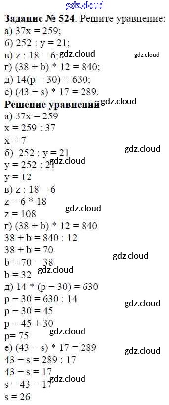 Ответ на задание 524 Учебник Математика за 5 (пятый) класс Виленкин, Жохов, Чесноков, Шварцбурд 2013