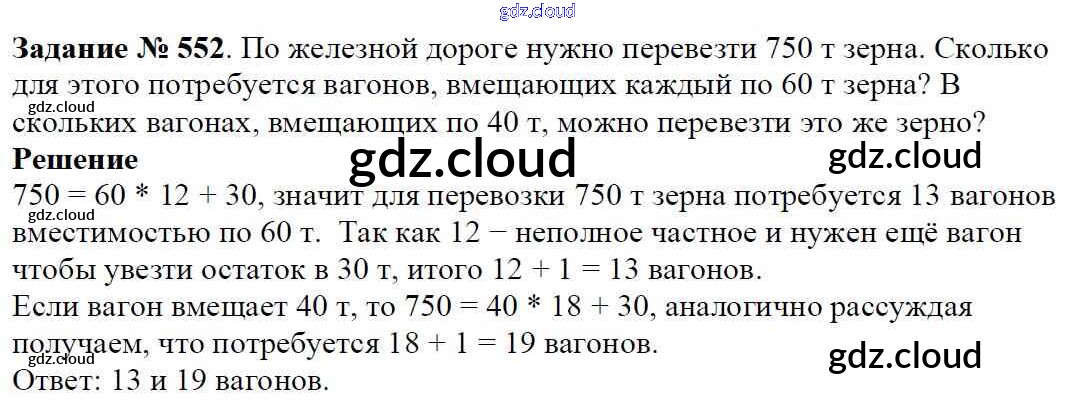 Ответ на задание 552 Учебник Математика за 5 (пятый) класс Виленкин, Жохов, Чесноков, Шварцбурд 2013
