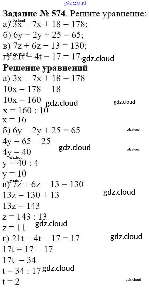 Ответ на задание 574 Учебник Математика за 5 (пятый) класс Виленкин, Жохов, Чесноков, Шварцбурд 2013