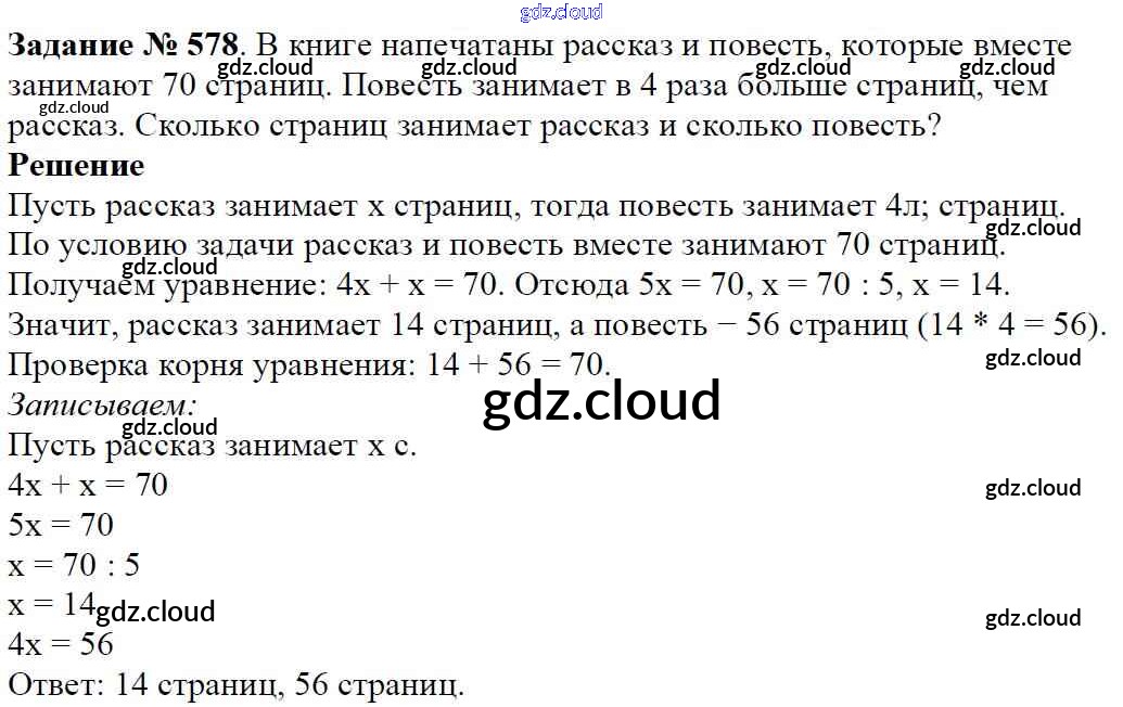 Ответ на задание 578 Учебник Математика за 5 (пятый) класс Виленкин, Жохов, Чесноков, Шварцбурд 2013