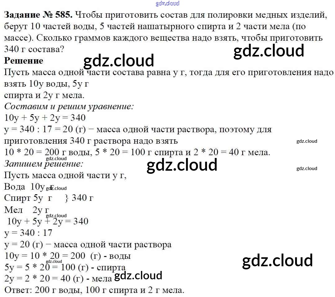 Ответ на задание 585 Учебник Математика за 5 (пятый) класс Виленкин, Жохов, Чесноков, Шварцбурд 2013