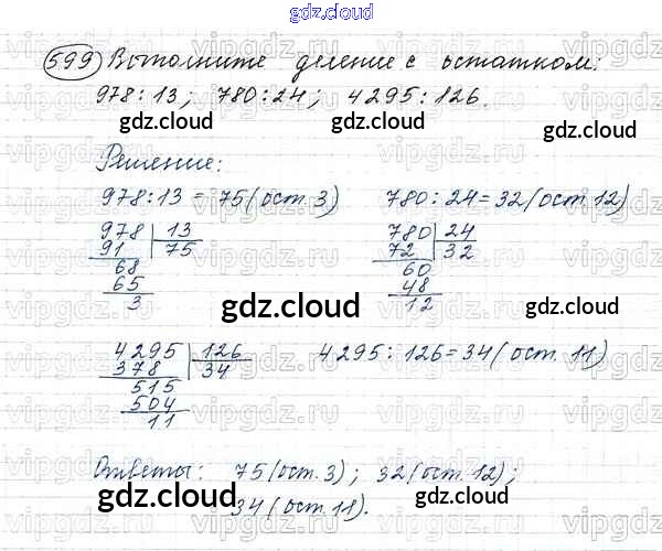 Ответ на задание 599 Учебник Математика за 5 (пятый) класс Виленкин, Жохов, Чесноков, Шварцбурд 2013