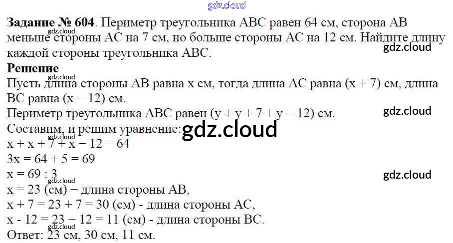 Ответ на задание 604 Учебник Математика за 5 (пятый) класс Виленкин, Жохов, Чесноков, Шварцбурд 2013