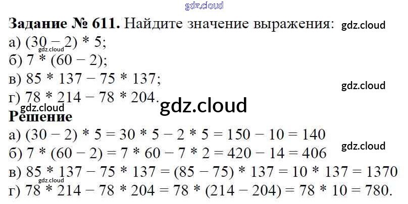 Ответ на задание 611 Учебник Математика за 5 (пятый) класс Виленкин, Жохов, Чесноков, Шварцбурд 2013
