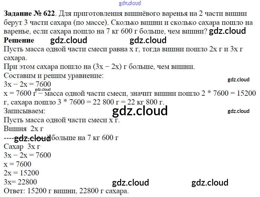Ответ на задание 622 Учебник Математика за 5 (пятый) класс Виленкин, Жохов, Чесноков, Шварцбурд 2013