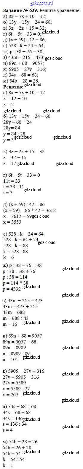 Ответ на задание 639 Учебник Математика за 5 (пятый) класс Виленкин, Жохов, Чесноков, Шварцбурд 2013